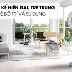 Quạt thay đổi linh hoạt theo không gian sử dụng với chiều cao 117 – 143 cm rất tiện dụng