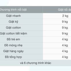 10 chương trình giặt được tích hợp sẵn, tiết kiệm thời gian cũng như nâng cao chất lượng giặt: